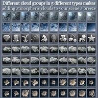 Are you ready to float on Cloud Nine? This atmospheric cloud set contains 180 individual presets and groups that make adding quality clouds to your scene a snap. Mixing and matching with other clouds and realistic sky presets means unlimited potential.