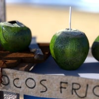 Let me introduce you to my favorite, family-owned coconut cart on the island. This cart is parked daily at the beach's white sand. This practical tricycle serves about 40 coconuts every day to the parched tourists, who have spent a little too much time on the beach, or to the passerby’s that just want to try this tropical treat. Coconuts, cherished for their vitamin-packed water and nutritious meat, have long been a staple in tropical locations. Picked from the coconut palm tree, these fresh young, green coconuts offer a sweet, nutty and satisfying taste.