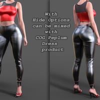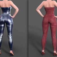 This set comes with leather and denim materials. Their colors can be changed by yourself, or you can apply ready-to-use color presets. There are also hide/unhide options for jumpsuit parts.