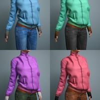 4 color options are included for the jacket, jeans and gloves and 1 for the boots.
