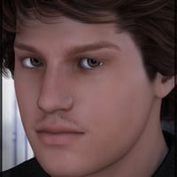 He comes with three base mats (DAZ Studio, DAZ Studio SSS and Poser SSS), six natural eyes, facial hair options, and a chest hair option. The mats are created so you can use them on every Genesis 2 Male character.