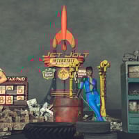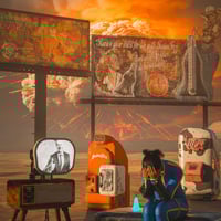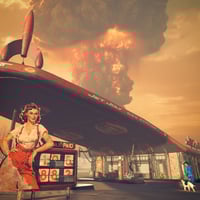 In this alternate post-apocalyptic world, the futuristic hopes of the 1940s to 1960s have crashed into a landscape devastated by nuclear war. Amidst the ruins and remnants of bygone technology, survivors roam, desperately seeking resources for their daily survival. The once-grand symbols of technological prowess are now abandoned relics, reminders of an era of progress and optimism now reduced to ashes.