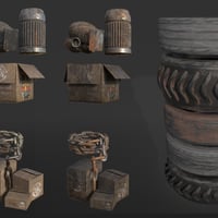 A very wide variety of textures are delivered with these sets.Here is a complete set of props that can populate your dystopian or post-nuclear universe.
