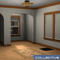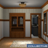 Customization is also a breeze, with numerous material zones designed to allow color changes with as little hassle as possible. All exterior textures are created with grayscale maps tinted by the diffuse color, so changing the color of the siding or trim is as easy as picking a new color. Inside, the walls, floors, and ceilings of each room is individually unwrapped and easily modified in your favorite image editor. The trim in each room is also on its own material zone, so you can have differently painted trim in each room.