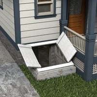 - Opening exterior bulkhead doors leading to cellar