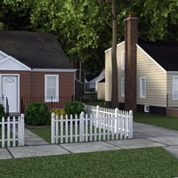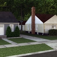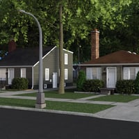 Collective3d Neighborhood Block 1a is the first of 3 parts comprising the Collective3d Neighborhood Block 1 Designed as a standalone product with a smaller CPU and memory footprint, Block 1A contains 10 small suburban neighborhood houses, matching garages, and all lawns, concrete, street, fences, trees, shrubs, utility poles, and street lights.