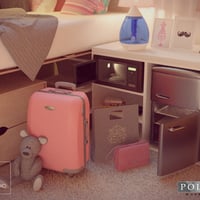 40 additional daily items (including books, laptop, shoes, clothes, luggage, sofa, and pillow)for College Girl Dorm set which can be used in other interior scene as well.