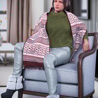 Comfy Style dForce Outfit for Genesis 9 is a casual and comfy outfit that includes a shawl, sweater, pants, and boots.