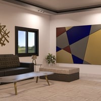 With sleek, modular furnishings, artistic wall decor, and elegant lighting, the Common Room is perfect for urban living room setups, high-end apartments, or upscale lounges.