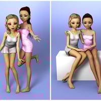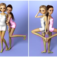 A set of 10 couple/group poses, composed of 24 individual poses, all with mirrors. The main set is made for Keiko 6, but an independent Genesis 2 Female version of the set is included, for use on other shapes.