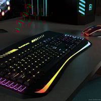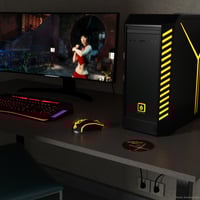 This set includes standard office equipment as well as gaming hardware with a flair.