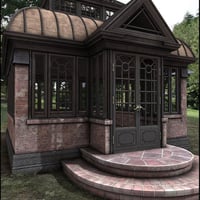 The Conservatory is an elegant and versatile 3D building featuring both interior and exterior parts. Perfect as a greenhouse for dainty orchids or a sunny escape on spring days, it includes a back wall to give the impression of being attached to a house. This wall can be substituted for another if desired.