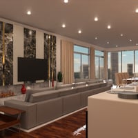 The neutral palette, stylish décor, and seamless flow into the living area create a warm yet modern atmosphere, ideal for family gatherings, lifestyle renders, or architectural visualization.