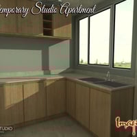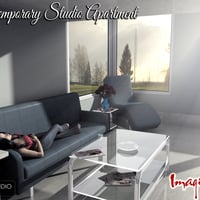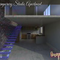 Contemporary Studio Apartment is a small but classy interior apartment setting which includes a kitchen area with Range/Oven, Refrigerator, double sink and lots of counter space. There is a small living area and an upper Loft with glass barrier. The glass staircase has multiple Uber Surface presets to illuminate the staircase in different colors and can also be turned OFF if you prefer not to have the staircase illuminated.