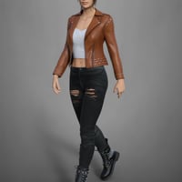 The Cool Girl Suit is suitable for Genesis 8 and 8.1 women and is a beautiful, cool leather and ripped pants suit.