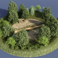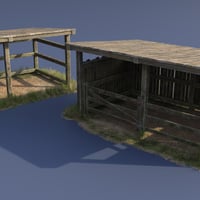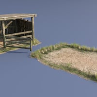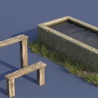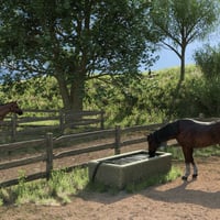 Also includes a wooden horse shelter, stone trough, wooden stile, grass props, and 3 large Alder trees.