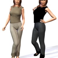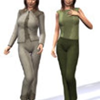 Cosmopolitan Girl is the woman about town. She wears a smart jacket over a loose blouse, and has sharply creased slacks. Her shoes are stylish, but simple, no nonsense pumps with a special auto-morph which matches the footforShoe morph in V4.