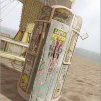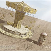 Give the Carousel Swing Ride 3D set a new look with Cotton Candy, a striking texture add-on featuring a colorful pink-and-yellow scroll theme with grungy detailing.