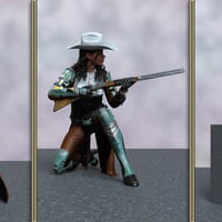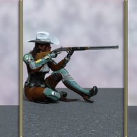 Step into a world where Zahara 9, the fearless cowgirl, navigates the wilds of a distant planet armed with sleek revolvers and advanced long guns, ready to face any challenge with her signature style and unyielding determination.