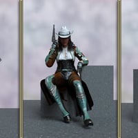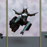Each pose in this set is meticulously crafted to capture the dynamic and adventurous spirit of a sci-fi cowgirl, from quick-draw shootouts and high-speed chases to moments of vigilant scouting and strategic combat.