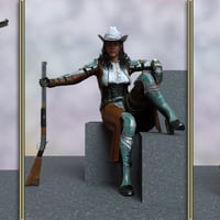 Introducing the "Cowgirl Galore poses for Zahara 9" for Daz Studio, a thrilling collection of 20 poses that blend the rugged charm of the Old West with the high-tech flair of a futuristic frontier.