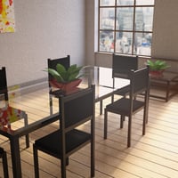 The Cozy Dining Room for Daz Studio. Includes room interior, plant, dining table, dining chair, small table, and 2 pictures. All prop items can be loaded separately for versatility when using this set. Also includes one full scene preset that loads all props with scene. Optimized for Iray and 3Delight.