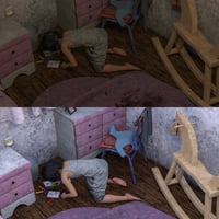 An old, unclean bedroom of a young child who has apparently been possessed by a demon. This is not the average room for a child, and there are many surprises to be found all around the room. Take a look around, open the wardrobe, open the doll house, look under the bed. You never know what might be lurking there!