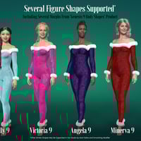 A form-fitting, fur/tinsel-trimmed off-shoulder garment that has built-in support for several of the most popular Genesis 9 Feminine shapes, as well as several chest morphs from Genesis 9 Body Shapes