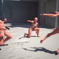 The poses are virtually divided into groups: aim, walking, shooting, hit, surrender and they also include 6 interacting, fighting pairs.