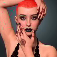Inject color and fun to your Genesis 9 characters with this Henna Tattoos and Nails set! Try multiple combinations of nails and tattoo colors to match your favorite wardrobe, from the classic brownish tones to metallic or iridescent effects