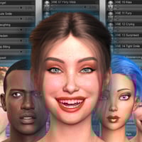Add life to CX Lilou with this set of expressions! They are easy to apply with just one click or use the dials for more control. Even if they were designed for Lilou, most of them will work nicely with other Genesis 9 characters you own (some adjustments might be needed)
