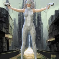 Cyberpunk Enforcer for Genesis 8 and 8.1 Females from Midnight_Stories is a sleek and elegant suit with a cyber headset and conforming guns.