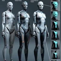 Arion 3 comes with 150 material presets for Genesis 9 and the GeoShell suit, giving you thousands of possible combinations. Options include synthetic gynoid looks with soft gel‑like skin, half‑human cyborg styles with natural skin, high‑gloss finishes with decals, rusty and worn variants, graffiti panels, opacity controls, removable panels, and face panel options.