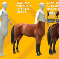 DA Load all dForce plus Mat Transfer: Loads both DA dForce Hair items in the correct location on Centaur 9 and then transfers characteristics from the applied Centaur 9 material preset to the dForce Hair items. For example, a brown horse coat will transfer brown textures to the dForce Hair.