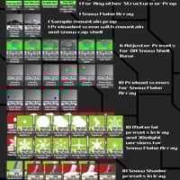 Also included are a stack of Material Presets for the Snow Array and a set of Snow Shader Presets for use with the shells. Plus a fee mountain prop with a pre-configured Snow Cap Shell and a bunch of other preset snowflake scenes so you can quickly add Snow flakes to your scene.