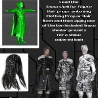 The Snow Shell Overlay - Clothing Skin Hair is designed to add a snow shell to any figure, clothing or hand props. Simply add the shell to your existing item and add a snow shader of your choice.