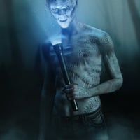 He arrives in the apocalyptic world armed only with a torch, broken goggles, and arm braces for a bit of protection. Add a beard with matching eyebrows to roughen his look further.