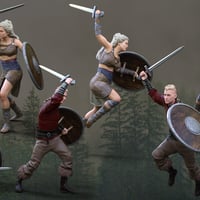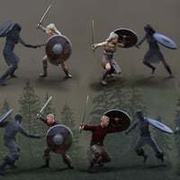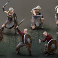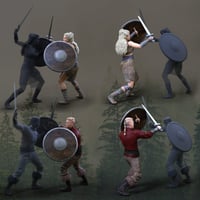 Included in this set are 24 Sword and Shield based combat poses (12 single and 12 dual poses) crafted in male and female versions, wearable hand Presets for the Sword and Shield props in the 'Viking Shield Kit for Genesis 8' for both Genesis 8 Female and Genesis 8 Male, 2 Sword Reverse/Forward grip Presets and also Lower and Upper Partial poses for mix and matching of each pose. Each Pose Preset also includes a 200x200 tooltip for easy viewing and selection.