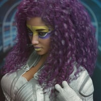 Daiosa Hair is a morphing, polygonal model of chest length, tight curly hair with a side part. The hair is fitted for Genesis 3 Females and Genesis 8 & 8.1 Females (.DUF) with auto-conforming custom morphs for Daz Original characters.
