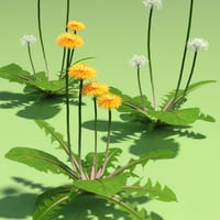 The dandelion Taraxacum spp is one of the most commonly found wildflowers ( or weeds depending on your point of view) in gardens, in lawns and grassland and on roadsides around the temperate world. With its pretty bright golden flowers and the iconic Dandelion Clock seed heads, which shed thousands of tiny parachutes in to the air in the slightest breeze, its a must have for anyone who wants to add some realistic vegetation to their scenes, whether its as a close up plant or en mass in a lawn or patch of grass! You could even pop them in among the cracks in the paving or curbs in your urban renders!