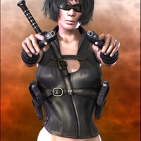 >Highly detailed modeling in combination with photo realistic textures by master texturer DarkStarBurning, Dark Raven is a unique clothing pack for DAZ 3D's Victoria 4. It includes a set of highly detailed weapons, is loaded with morphs and is super-conforming. Now bundled with the Dark Raven futuristic pose-able motorcycle.