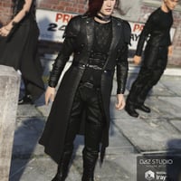 This Gothic style 3D outfit for the Genesis 3 Male contains a coat, shirt, vest, pants, coat, armbracers, belt and a choker for a glorious dark style.