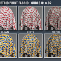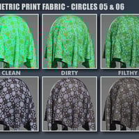DD PBR Geometric Fabric Shaders for Iray Vol 2 is based on circles and cubes themed fabric designs. Included are 6 patterns, each with 2 color options. All designs come in 3 unique finishes - clean fabric for that fresh new look, dirty fabric for when your items have been knocked around and used, plus filthy fabric for a totally neglected or trashy vibe!