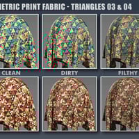 DD PBR Geometric Fabric Shaders for Iray Vol 3 includes two more geometric themed fabric designs - dynamic and triangles. Included are 6 patterns, each with 2 color options. All designs come in 3 unique finishes - clean fabric for that fresh new look, dirty fabric for when your items have been knocked around and used, plus filthy fabric for a totally neglected or trashy vibe!
