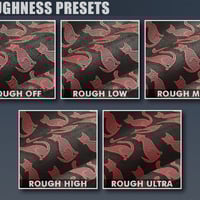 Changing the appearance of each preset is a breeze with the included Utilities folder, containing a bunch of time saving presets at your disposal. With 5 Roughness presets, 5 Normal strength presets, 19 Tiling presets and 10 Tiling Offset presets, you can quickly tweak the surface to your liking. Choose the look you want.