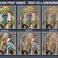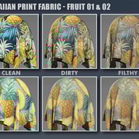 DD PBR Hawaiian Print Fabric Shaders for Iray includes coral, flamingos, fruit, and surfboards Hawaiian print fabric styles. Included are 3 unique print and color patterns per style, giving you 12 vibrant and fashionable patterns to play with. In addition, each of the 12 patterns comes in 3 unique finishes - clean Hawaiian print fabric to show off your brand new purchases, dirty Hawaiian print fabric for when your items have been a bit knocked around and used, plus filthy Hawaiian print fabric for that “beach day gone wild” appearance! This gives you a total of 36 unique shader presets. All textures are seamless and tileable with the included tiling presets, so you don’t have to worry about the scale looking out of place in your renders.