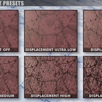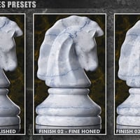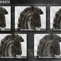 Looking for a specific Marble finish? Try one of the 3 ready-made Stone Finish presets (polished, fine-honed, and rough-honed) or create your own look with the additional 5 Roughness presets, 5 Normal strength presets, 6 Displacement Level presets, and 4 Displacement SubD level presets.