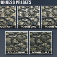 Changing the appearance of each preset is a breeze with the included utility folder, containing a bunch of time-saving presets at your disposal. With 5 roughness presets, 5 normal strength presets, 6 displacement level presets, 4 displacement SubD level presets, 19 tiling presets, and 10 tiling offset presets, you can quickly tweak the stone wall surface to your liking… from smooth, wet stone to rough, dry stone and anything in between.