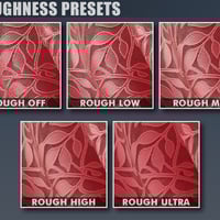 With 5 Roughness presets, 5 Normal strength presets, 19 Tiling presets and 10 Tiling Offset presets, you can quickly tweak the surface to your liking. Choose the look you want.