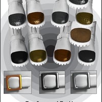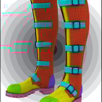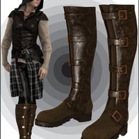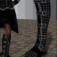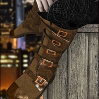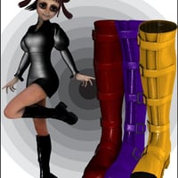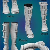 Included textures enhance their versatility. There are supple and touchable black and brown leathers, macho camo, girly brocade and a gleaming stitched patent leather with some sample presets for you to change to any color you want using the diffuse channel. To make things really easy, there are also presets for changing the buckles to steel or brass or gunmetal as well as to swap amongst the 11 toe cap textures, which include diamond and industrial plate textures in brass, copper and steel. You can also add your own diffuse to the rubber soles and easily get rid of the straps and buckles for a more Sci Fi look. Multiple MAT zones means these boots are optimized for use with shaders, so you can easily click your own textures onto any or all of the seven MAT zones.